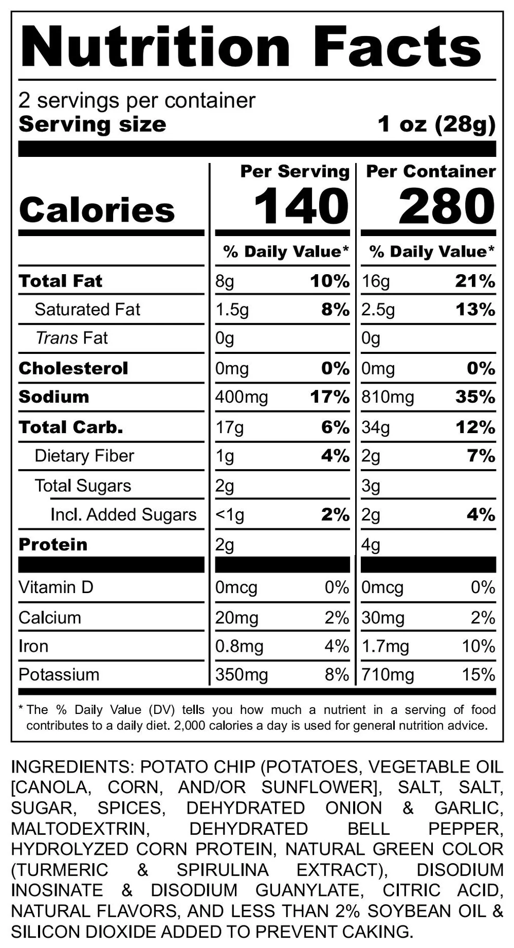 Dive into the fresh, herbaceous flavors of Mexico with Chipoys Verde potato chips. Inspired by traditional salsa verde, these chips feature a harmonious blend of tomatillo, cilantro, and mild green chili notes that dance across your palate. Each batch is carefully crafted using premium potatoes, creating a light, crispy texture that perfectly complements the bright, garden-fresh flavor profile. A naturally vibrant chip experience with no artificial dyes – just pure Mexican-inspired goodness.